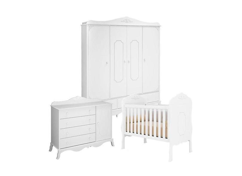 O menor preço encontrado no Brasil para Quarto de Bebê Realeza 4 Portas Cômoda 1 Porta Branco Acetinado Canaã atualmente é R$ 2.378,00.