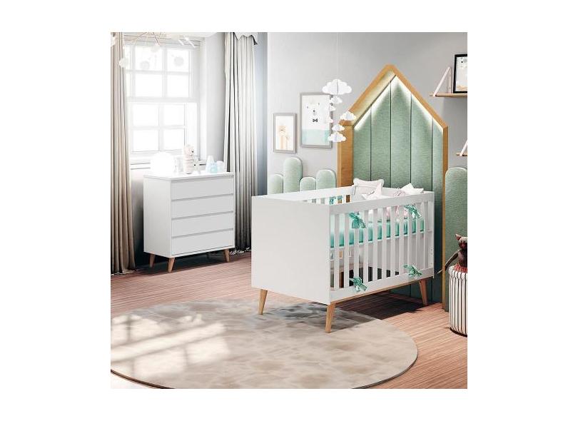 Quarto de Bebê Retrô Cômoda Infantil Lorena Berço 3 em 1 Ludmila Branc
