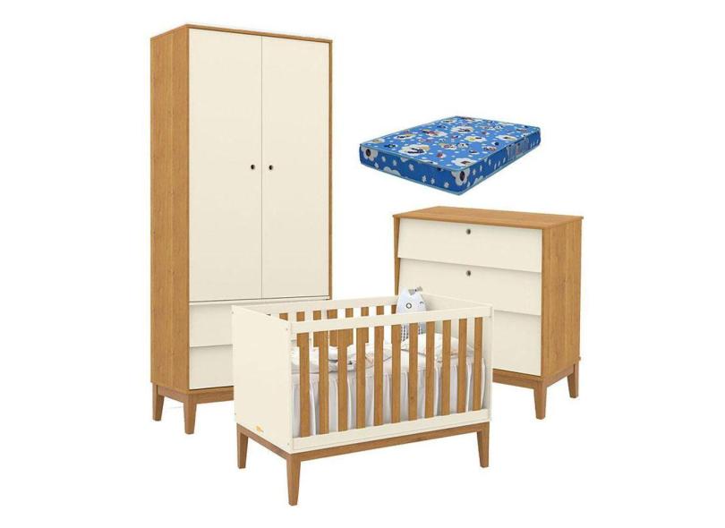 O menor preço encontrado no Brasil para Quarto de Bebe Unique 2 Portas com Cômoda Gaveteiro Off White Freijó Eco Wood e Colchão Ortobom - Matic atualmente é R$ 2.166,48.