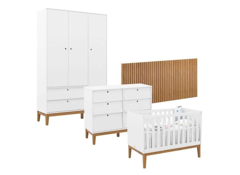 O menor preço encontrado no Brasil para Quarto de Bebê Unique 3 Portas com Cômoda 6 Gavetas e Painel Ripado Branco Soft Eco Wood - Matic atualmente é R$ 2.731,53.