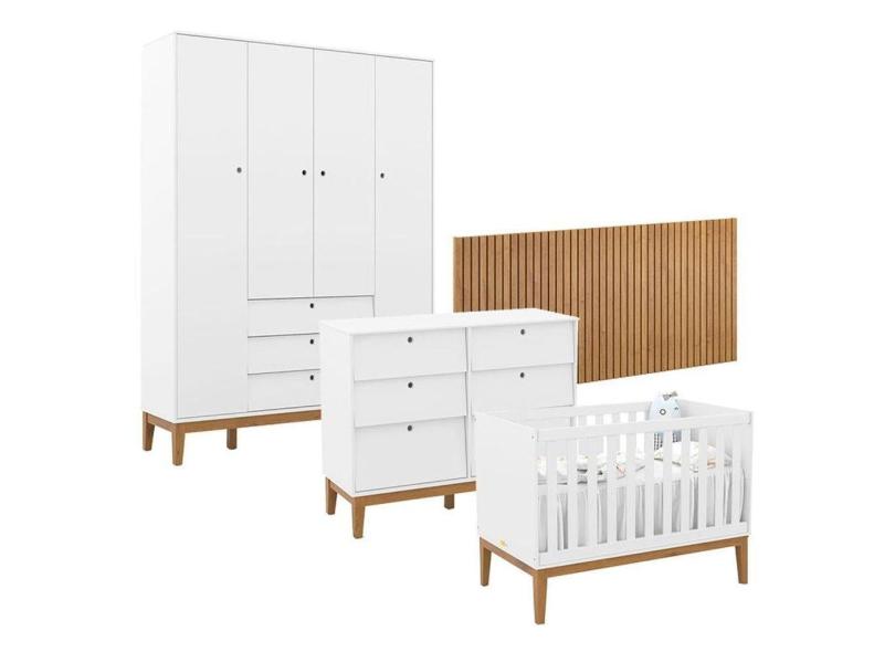 O menor preço encontrado no Brasil para Quarto de Bebê Unique 4 Portas com Cômoda 6 Gavetas e Painel Ripado Branco Soft Eco Wood - Matic atualmente é R$ 2.970,93.