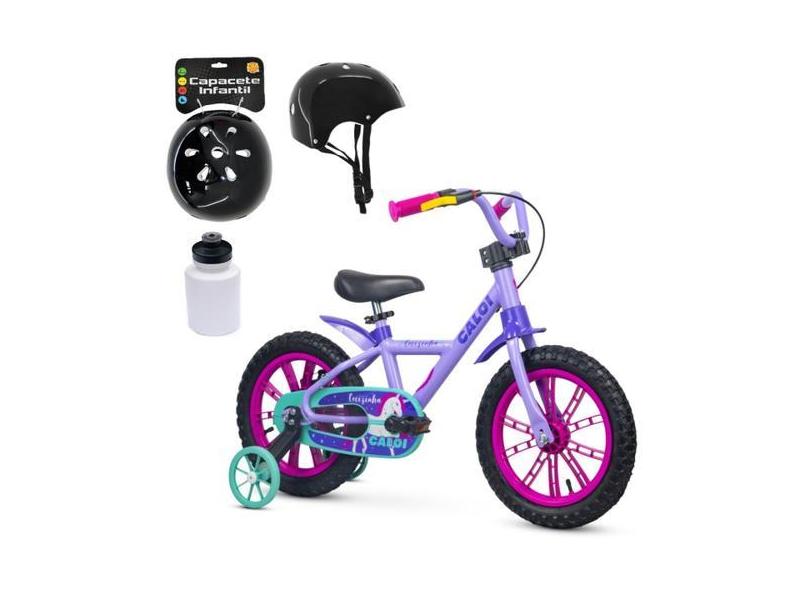 Bicicleta Aro 14 Unicórnio Com Rodinhas Squeeze e Capacete - Nathor