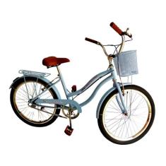 Bicicleta aro 24 retrô vintage sem marchas com cesta azulbb - Maria Cl