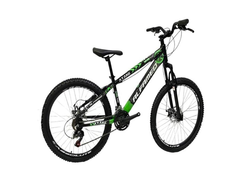 Bicicleta Aro 26 Alfameq Atake Câmbios Importados 21v Slide Preto Verde