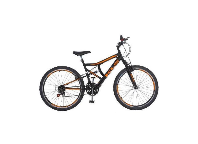 Bicicleta Aro 26 Kls Full Suspension Gold 45MM Freio V-Brake Mtb 21 Ma