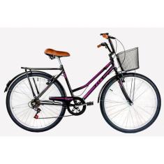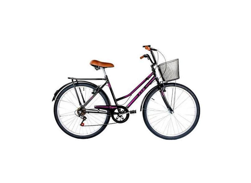 Bicicleta Aro 26 Kls Retro Sport Freio V-Brake 6 Marchas, Preto, Pink