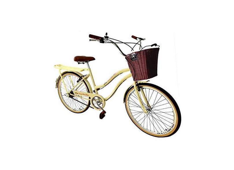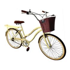 Bicicleta Aro 26 urbana cesta vime s/marchas bagageiro bege