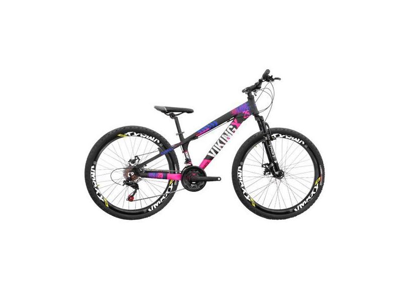Bicicleta Aro 26 Viking Tuff X25 24v Freios Hidráulicos, Preto, Rosa,
