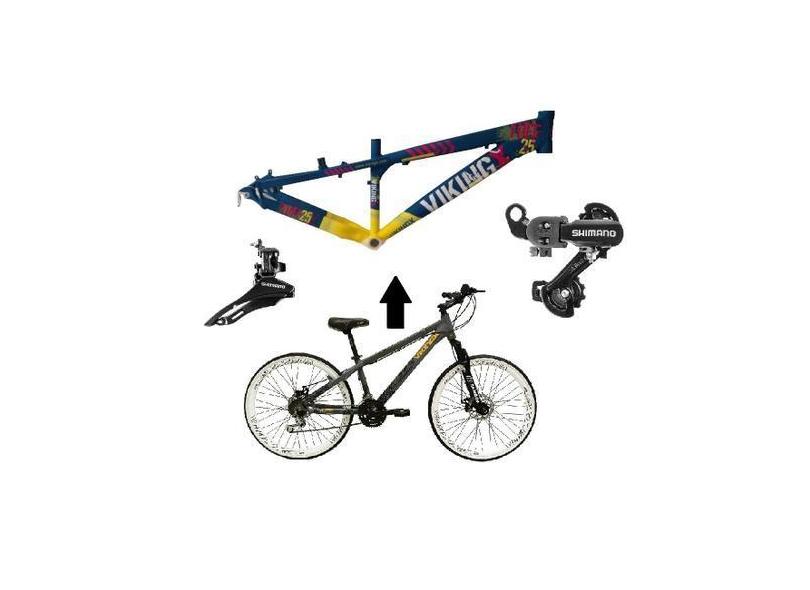 Bicicleta Aro 26 Vikingx Tuff Azul/Amarelo 21V Alumínio Câmbio Shimano