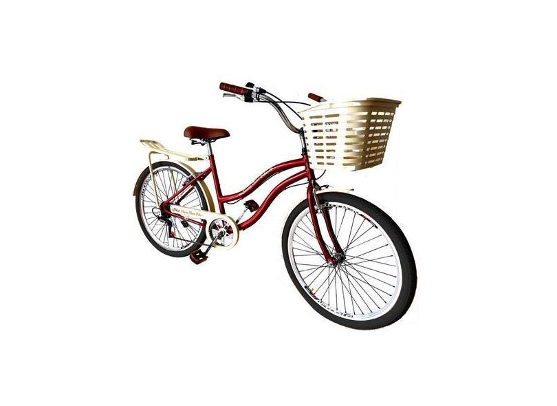 Bicicleta Aro 26 Vintage Bagageiro 6V Cesta Grande Vermelho - Maria Cl
