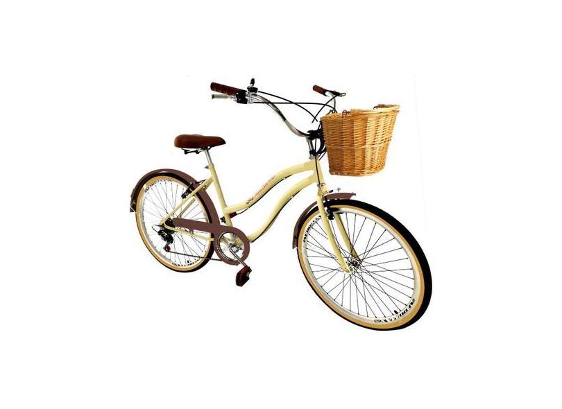 Bicicleta Aro 26 Vintage Retrô Com Cesta Vime 6 Marchas Bege - Maria C
