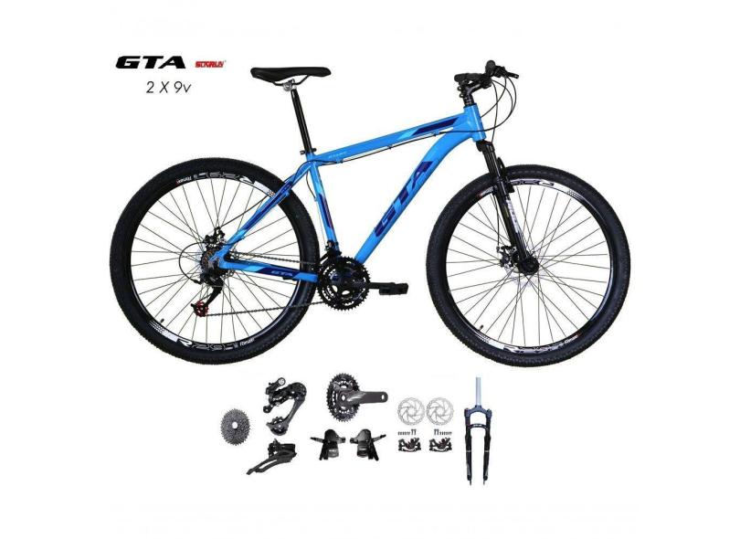 O menor preço encontrado no Brasil para Bicicleta Aro 29 Gta Start Kit 2x9 Gta Sunrun Freio Disco K7 11/36 Pedivela 24/38d Garfo Com Trava - Azul Tam.19 atualmente é R$ 1.252,80.