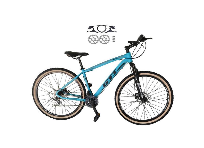Bicicleta Aro 29 Gti Roma 21v Freio a Disco Hidráulico Alumínio Garfo Suspensão com Pneu Faixa Bege - Azul