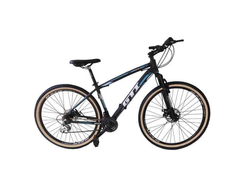Bicicleta Aro 29 Gti Roma Alumínio 27v Freio a Disco Mecânico Garfo com Suspensão Pneu com Faixa Bege - Preto\Azul