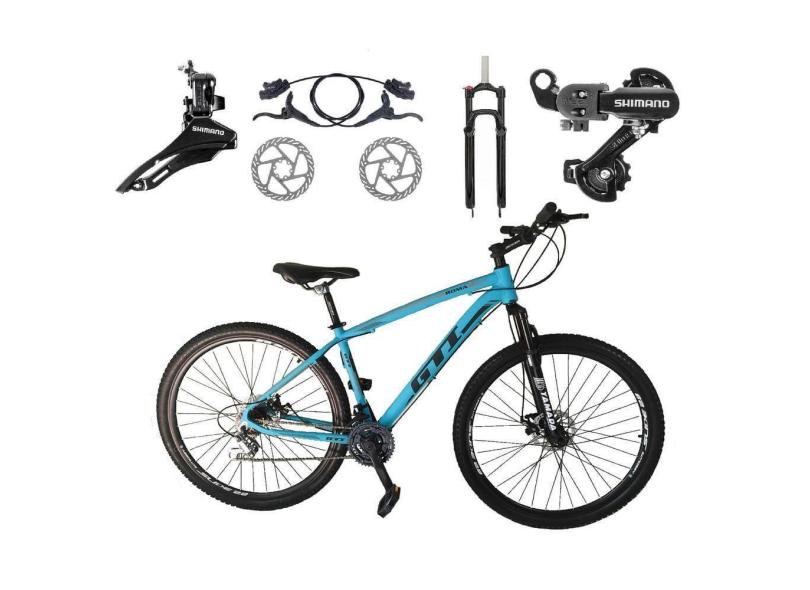 Bicicleta Aro 29 GTI Roma Shimano 24v K7 Freio a Disco Hidráulico Garfo Com Trava - Azul