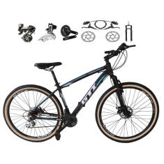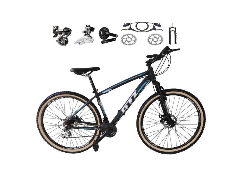 Bicicleta aro 29 Gti Roma Shimano Altus 24V Freio a Disco Hidráulico Garfo com Trava Pneu com Faixa Bege - Preto\Azul