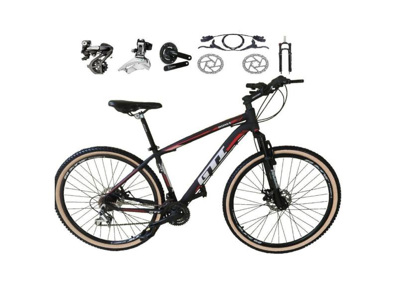 Bicicleta aro 29 Gti Roma Shimano Altus 24V Freio a Disco Hidráulico Garfo com Trava Pneu com Faixa Bege - Preto\Vermelho