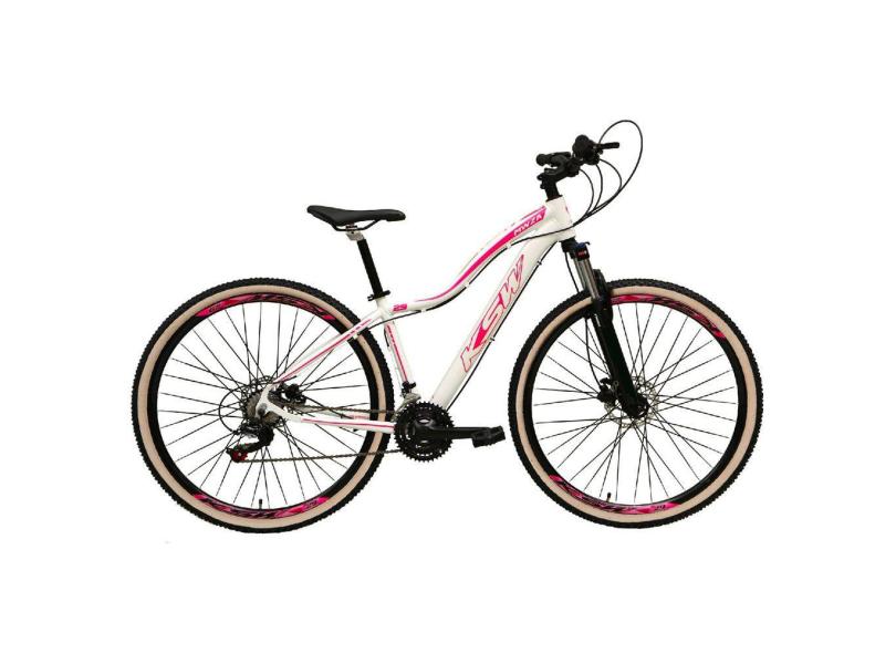 Bicicleta Aro 29 Ksw Mwza 24v K7 Câmbios Shimano Freio Hidráulico Garfo com Trava Pneu Faixa Bege - Branco/Rosa