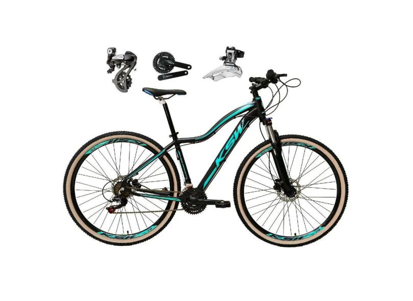 Bicicleta aro 29 Ksw Mwza Shimano Altus 24V Freio a Disco Hidráulico Garfo com Trava com Pneu Faixa Bege - Preto/Azul