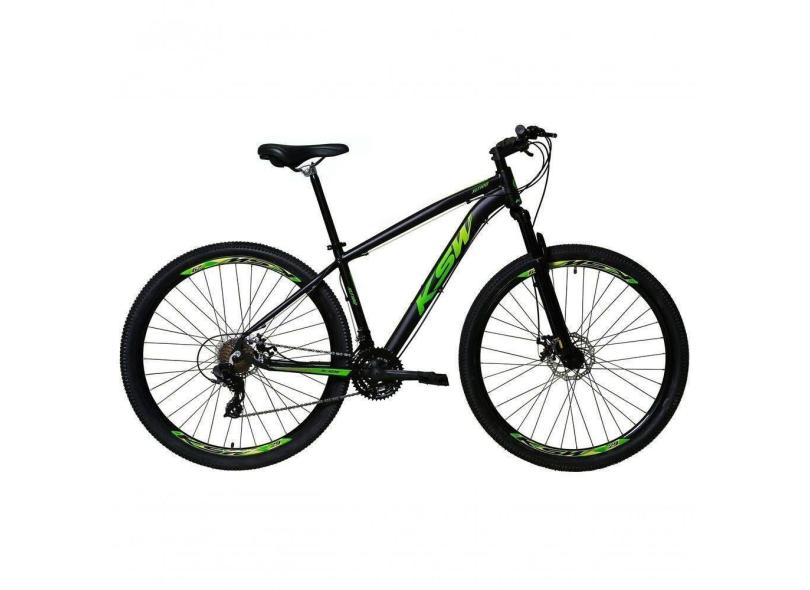 O menor preço encontrado no Brasil para Bicicleta Aro 29 Ksw Xlt 24v Freio A Disco Suspensão Mountain Bike Alumínio Preto-verde 19 atualmente é R$ 905,40.