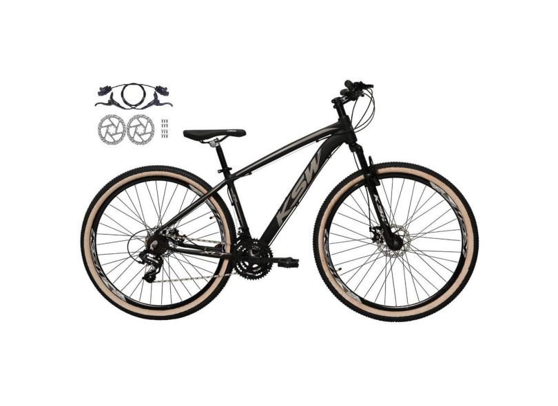 Bicicleta Aro 29 Ksw Xlt 24v Freios a Disco Hidráulicos Garfo Suspensão Pneu com Faixa Bege - Preto/Prata