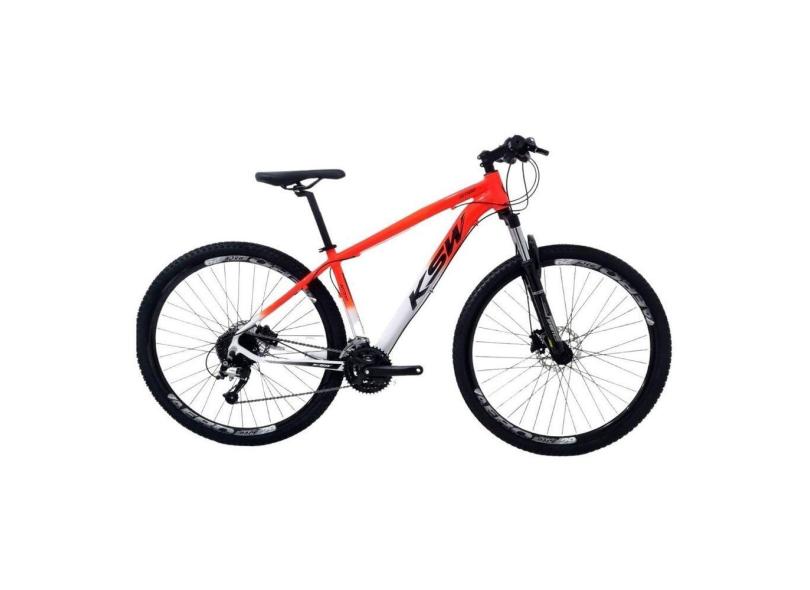 Bicicleta Aro 29 Ksw Xlt 27v Freio Hidráulico K7 Garfo com Trava - Laranja/Branco
