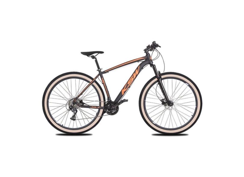 Bicicleta Aro 29 Ksw Xlt 27v Freio Hidráulico K7 Garfo com Trava Pneu com Faixa Bege - Preto/Laranja