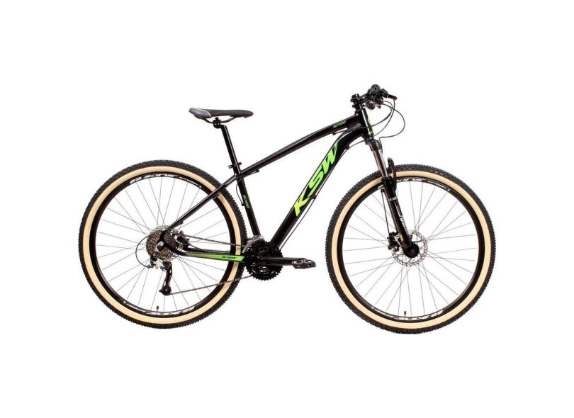 Bicicleta Aro 29 Ksw Xlt 27v Freio Hidráulico K7 Garfo com Trava Pneu com Faixa Bege - Preto/Verde