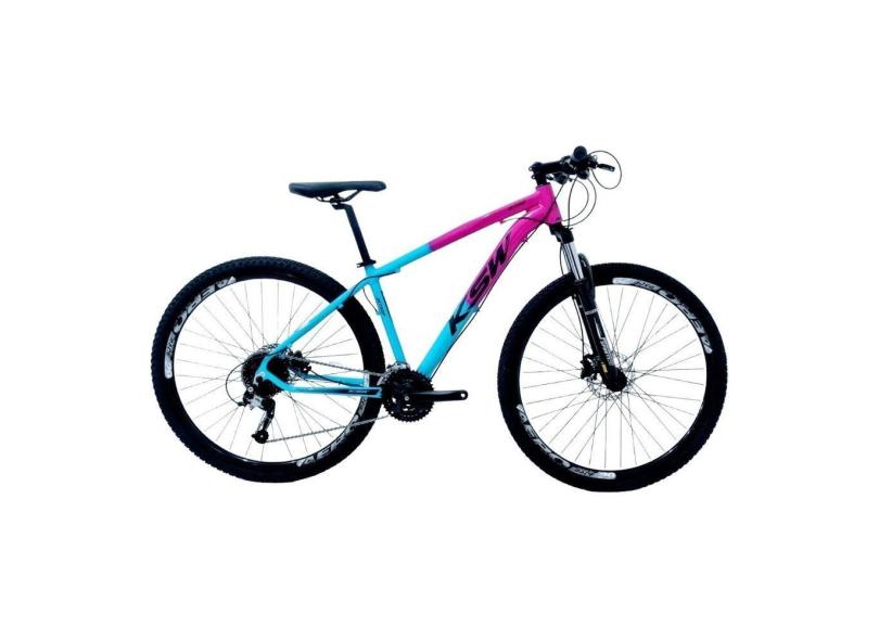 Bicicleta Aro 29 Ksw Xlt 27v Freio Hidráulico K7 Garfo com Trava - Rosa/Azul