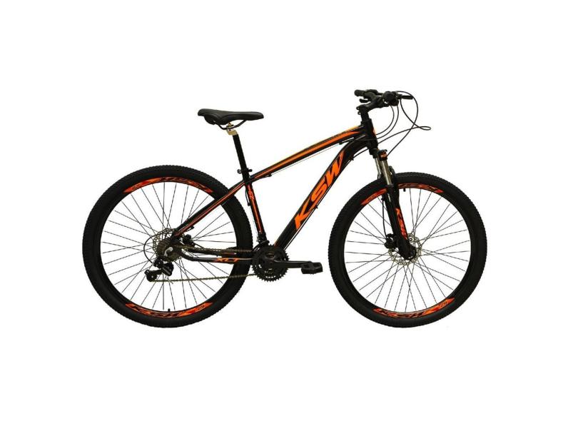 Bicicleta Aro 29 Ksw Xlt Alumínio 24v Câmbios Shimano Garfo com Trava no Ombro - Preto/Laranja