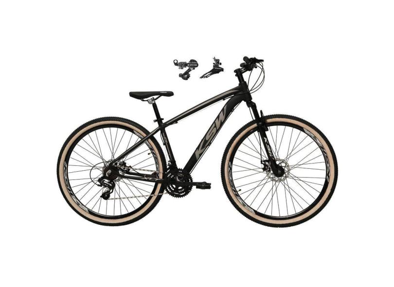 Bicicleta Aro 29 Ksw Xlt Alumínio 24v Câmbios Shimano Garfo Suspensão Pneu com Faixa Bege - Preto\Prata