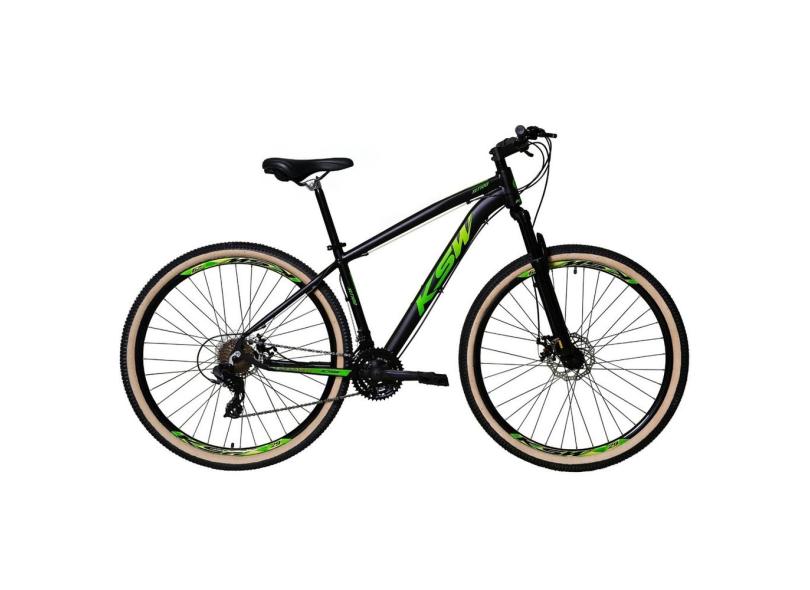 O menor preço encontrado no Brasil para Bicicleta Aro 29 Ksw Xlt Alumínio 27v Freio a Disco Mecânico Garfo com Suspensão Pneu com Faixa Bege - Preto/Verde atualmente é R$ 925,65.