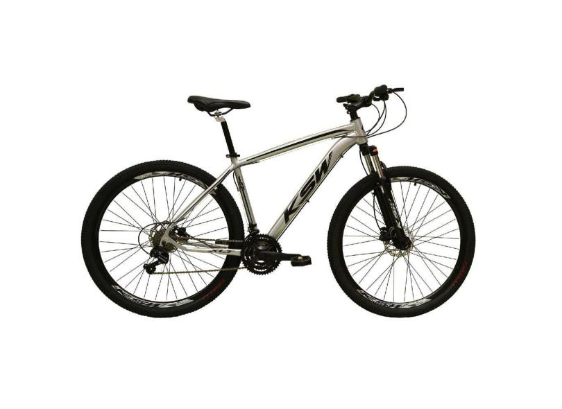 Bicicleta Aro 29 Ksw Xlt Câmbios Shimano 24v K7 Freios Hidráulicos Garfo Com Trava - Prata\Preto