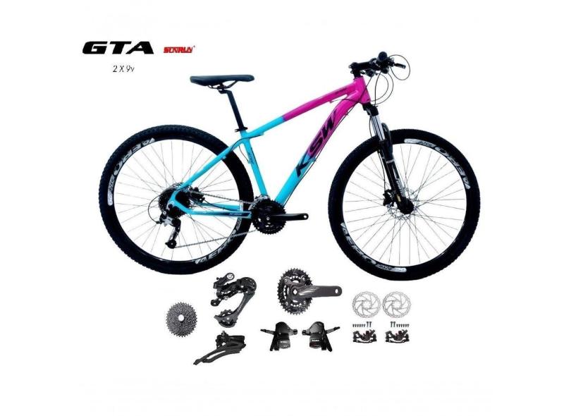 O menor preço encontrado no Brasil para Bicicleta Aro 29 Ksw Xlt Kit 2x9 Gta Sunrun Freio Disco K7 11/36 Pedivela 24/38d Garfo Com Trava - Rosa/azul Tam.15 atualmente é R$ 1.216,80.