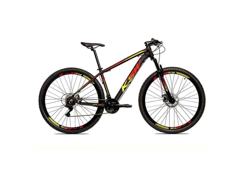 Bicicleta Aro 29 Ksw Xlt Shimano 24v K7 Freio a Disco Hidráulico Garfo Com Trava - Preto/Vermelho/Amarelo