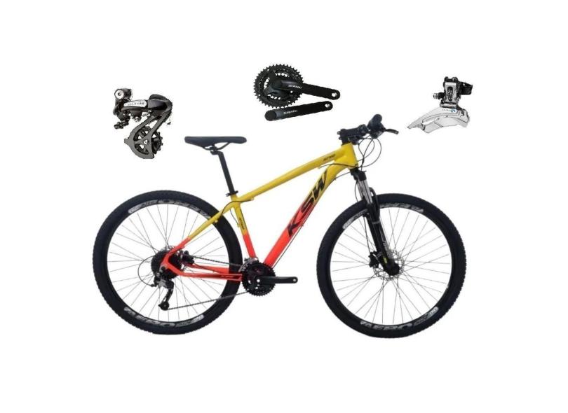 Bicicleta aro 29 Ksw Xlt Shimano Altus 24V Freio a Disco Hidráulico Garfo com Trava - Amarelo/Laranja