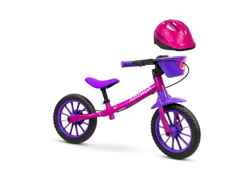 Bicicleta De Equilíbrio Balance Feminina Nathor Aro 12 Rosa E Roxo + C