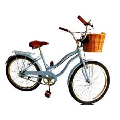 Bicicleta Feminina Aro 24 Retrô Sem Marchas Com Vime Azul Bb - Maria C