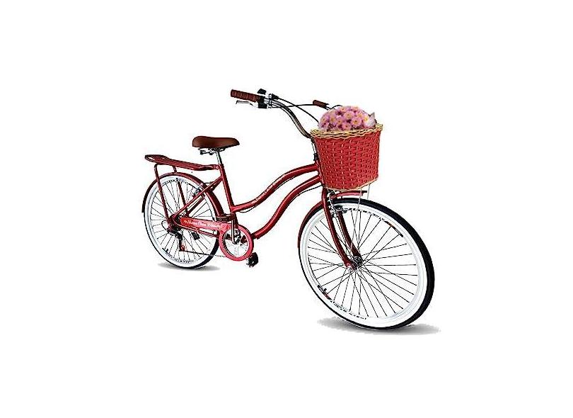 Bicicleta feminina aro 26 com cestinha tpo vime retrô 6v vrm