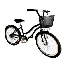 Bicicleta feminina aro 26 retrô sem marchas c/cesta preto