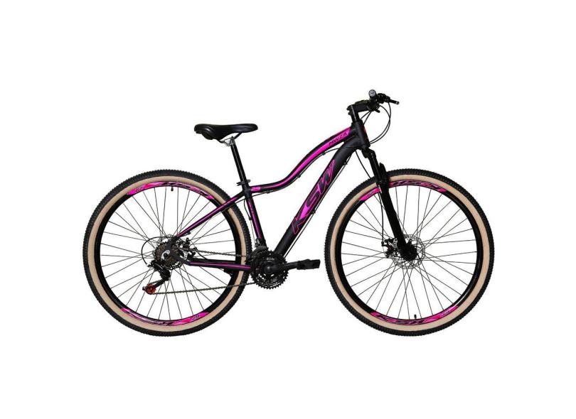Bicicleta Feminina Aro 29 Ksw Mwza 24v Freio a Disco Garfo Com Suspensão Mtb 29 Alumínio Pneu com Faixa Bege - Preto/Rosa