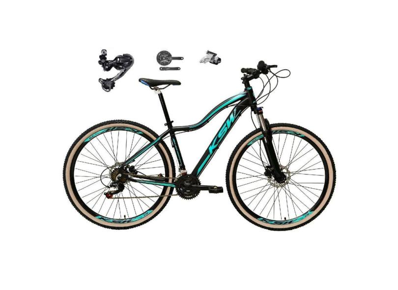 Bicicleta Feminina Aro 29 Ksw Mwza Câmbio Traseiro Shimano Deore e Altus 27v Freio Hidráulico Garfo Com Trava Pneu Faixa Bege - Preto/Azul