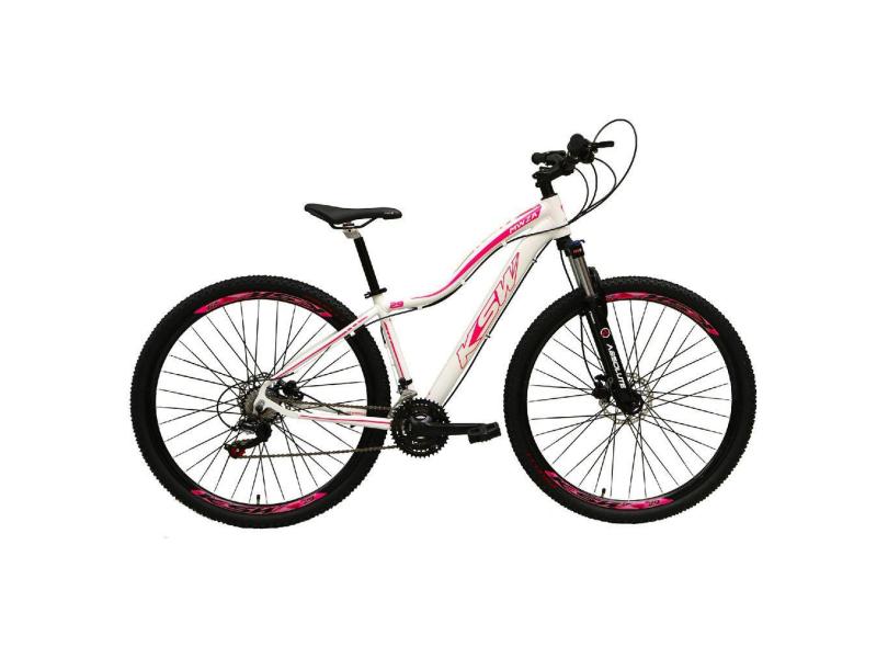 Bicicleta Feminina Aro 29 Ksw Mwza Câmbios Shimano 24v K7 Freios Hidráulicos Garfo Com Trava - Branco/Rosa