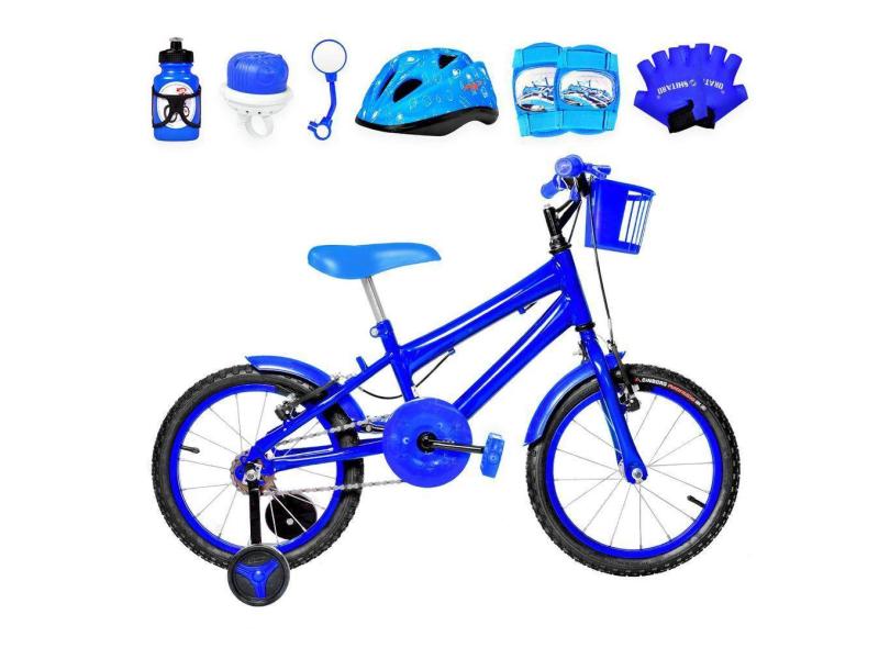 Bicicleta Infantil Aro 16 Alumínio Kit Proteção Azul