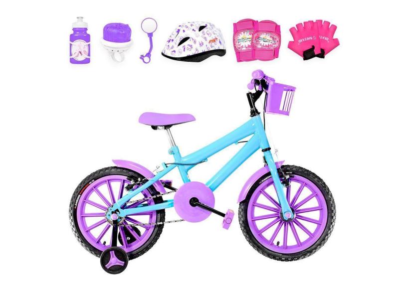 O menor preço encontrado no Brasil para Bicicleta Infantil Aro 16 + Kit Proteção Azul Claro e Lilás atualmente é R$ 747,92.