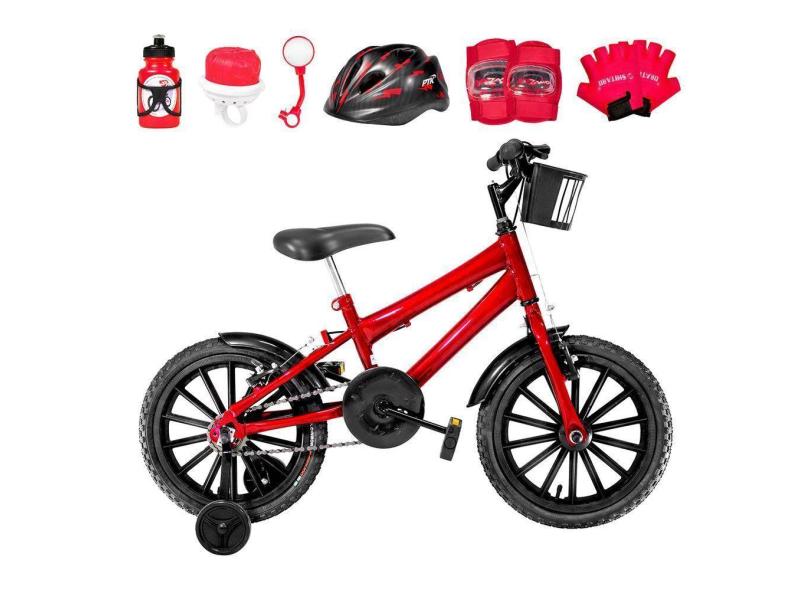 Bicicleta Infantil Aro 16 + Kit Proteção Vermelha e Preta