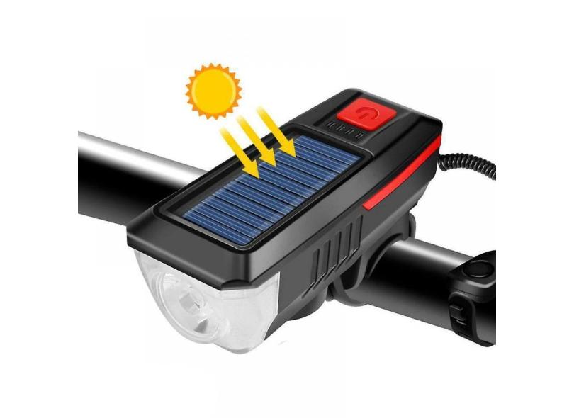Farol Bicicleta LED T6 Solar/USB 350lm 200m Preto+Azul