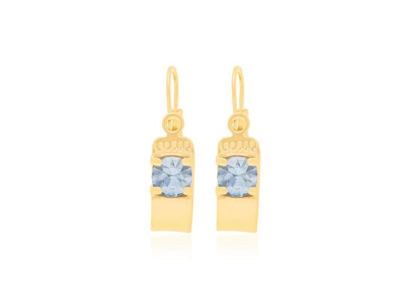 Brincos De Ouro 18K Femininos Argola Infantil Rommanel Cristal Quadrad