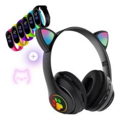 Fone Gattinho Infantil Led Menina Menino C/ Pulseira Digital - CAT EAR
