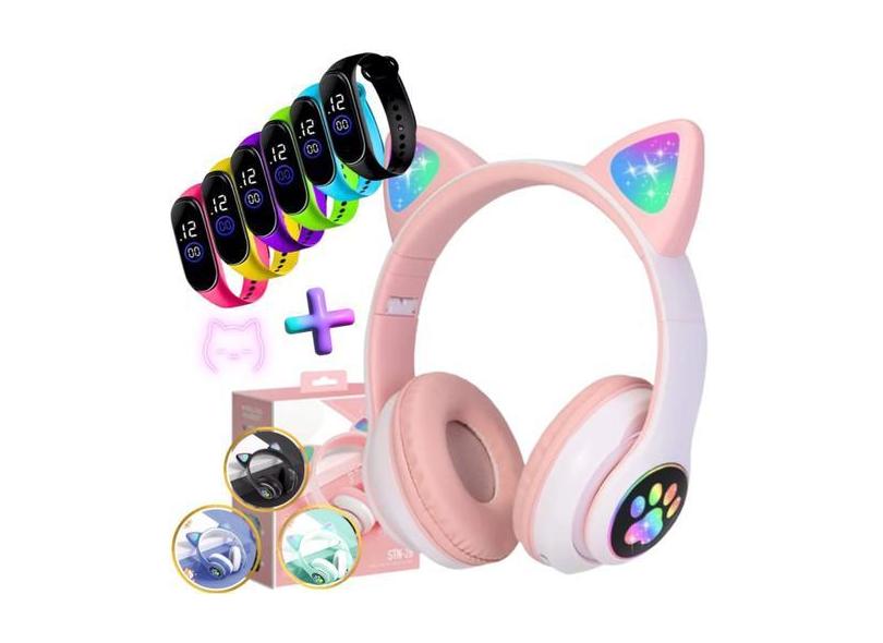 O menor preço encontrado no Brasil para Fone Ouvido Headphone Orelha Gato Bluetooth Infantil e Pulseira Led - atualmente é R$ 54,86.